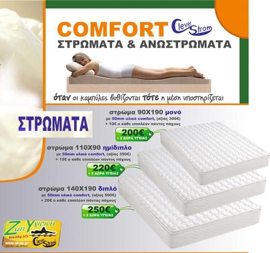- Με επίστρωση comfort 5 ή 8 εκατοστά από τη μια πλευρά του στρώματος, δηλαδή στρώμα και ανώστρωμα ενσωματωμένο.